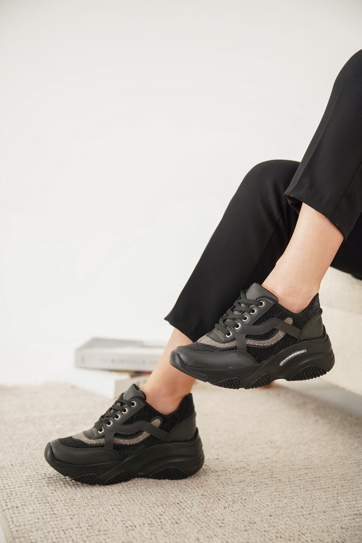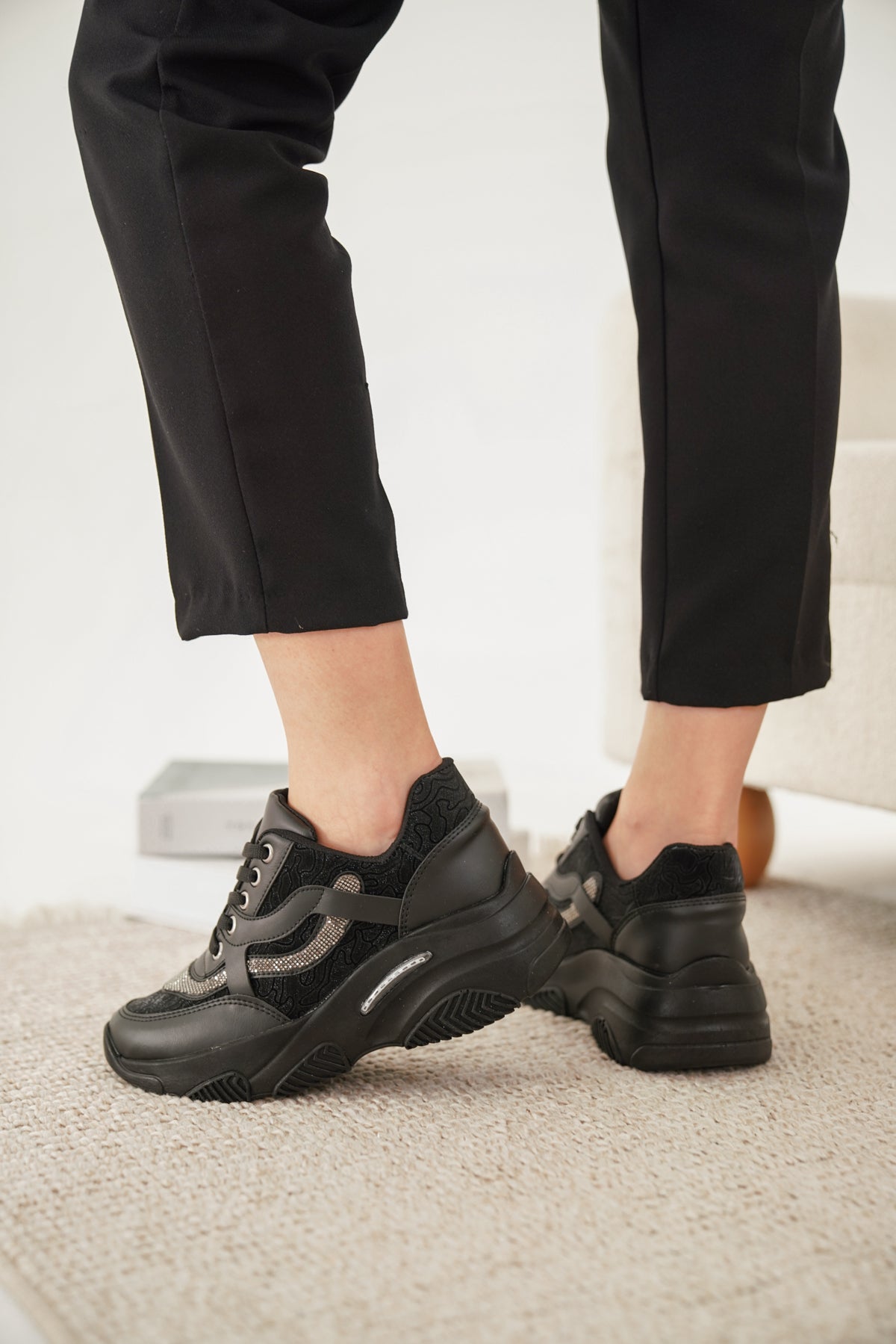 DNR 77-44 YÜKSEK TABAN TAŞ DETAYLI SPOR AYAKKABI